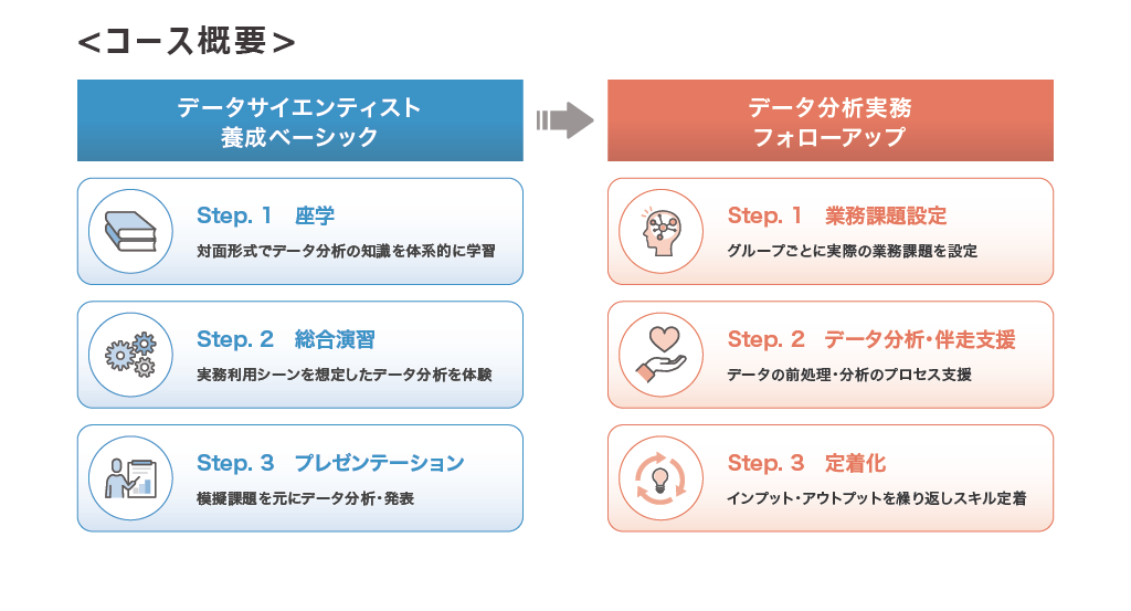 DX Universityの数あるプログラムの中で、同金庫がセレクトしたのは、統計解析・分析基盤技術やビッグデータ分析を網羅的に学習する集合研修プログラム「データサイエンティスト養成ベーシック」と、その受講者が実践的なデータ分析のプロセスを学ぶための伴走支援を受ける「データ分析実務フォローアップ」だ。
