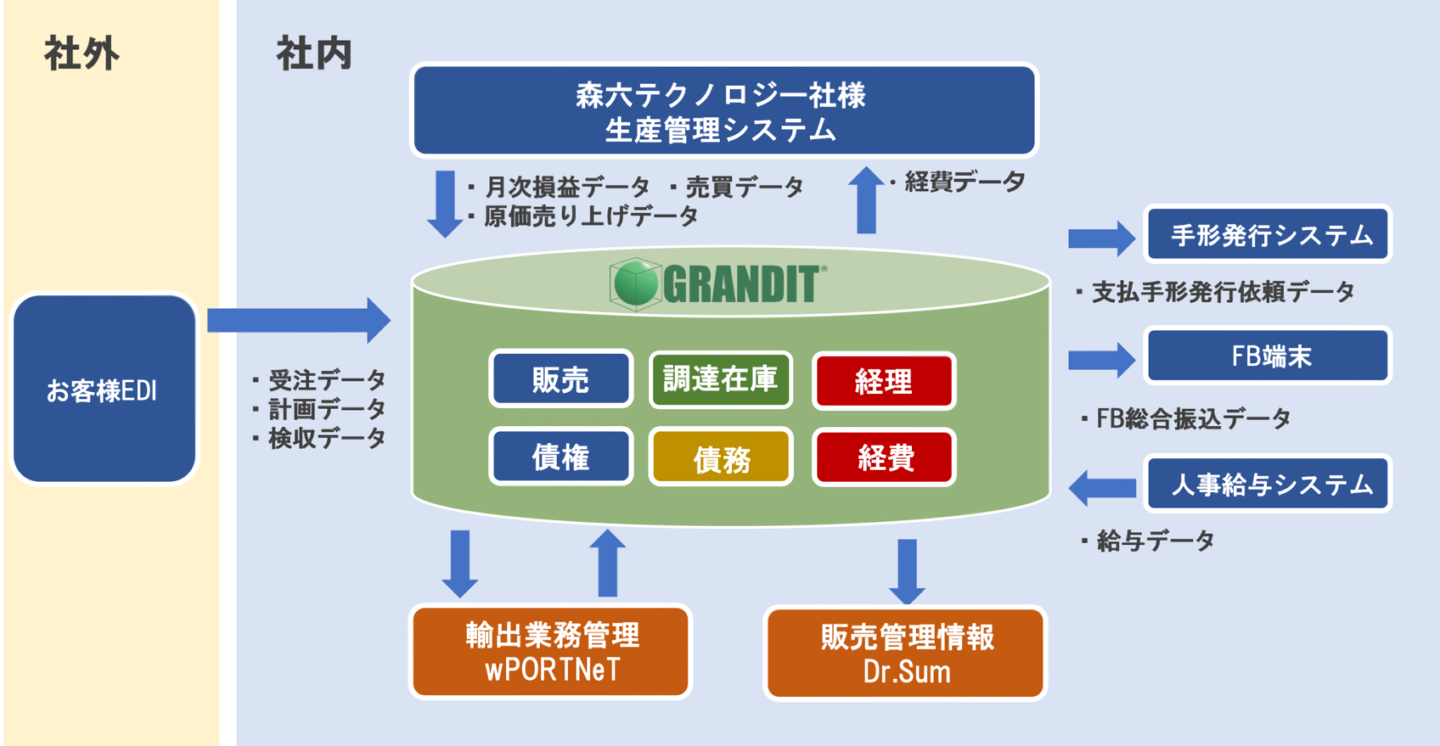森六グループ様のスクラッチで開発された旧システムは老朽化、保守運用のコスト増大という課題がありました。また法制度への対応も必要でした。日本の商習慣を熟知した販売モジュールと日商エレクトロ二クスの商社向けテンプレートが決め手となり「GRANDIT」をご採用。導入時のコスト、運用の人的リソースを抑えて戦略的な販売・会計システムを実現されました。