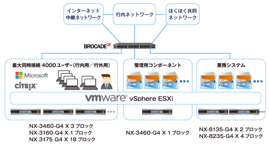 この北銀ソフトウエアの実績をもとに、2016年春、北陸銀行への導入を決定。その数は、Nutanix Enterprise Cloud Platform NX-3000シリーズとNX-8000シリーズ、合計29ブロック45ノードに及び、国内最大規模となる。さらに、ほくほくフィナンシャルグループを構成する北海道銀行にも導入が進められており、2017年初頭から両行の統合システムインフラとして本格稼働する。