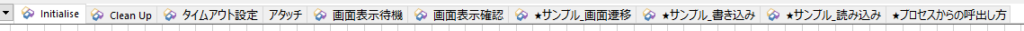 Initialize/Clean Upはデフォルトのページで、BPのバージョンによっては「初期化/クリーンアップ」と訳されているはずです。また名前に★が付いている「★サンプル~」「★プロセスからの呼び出し方」は説明用ページですので、テンプレートそのものではないことに注意してください。それでは各ページの役割について見ていきましょう。