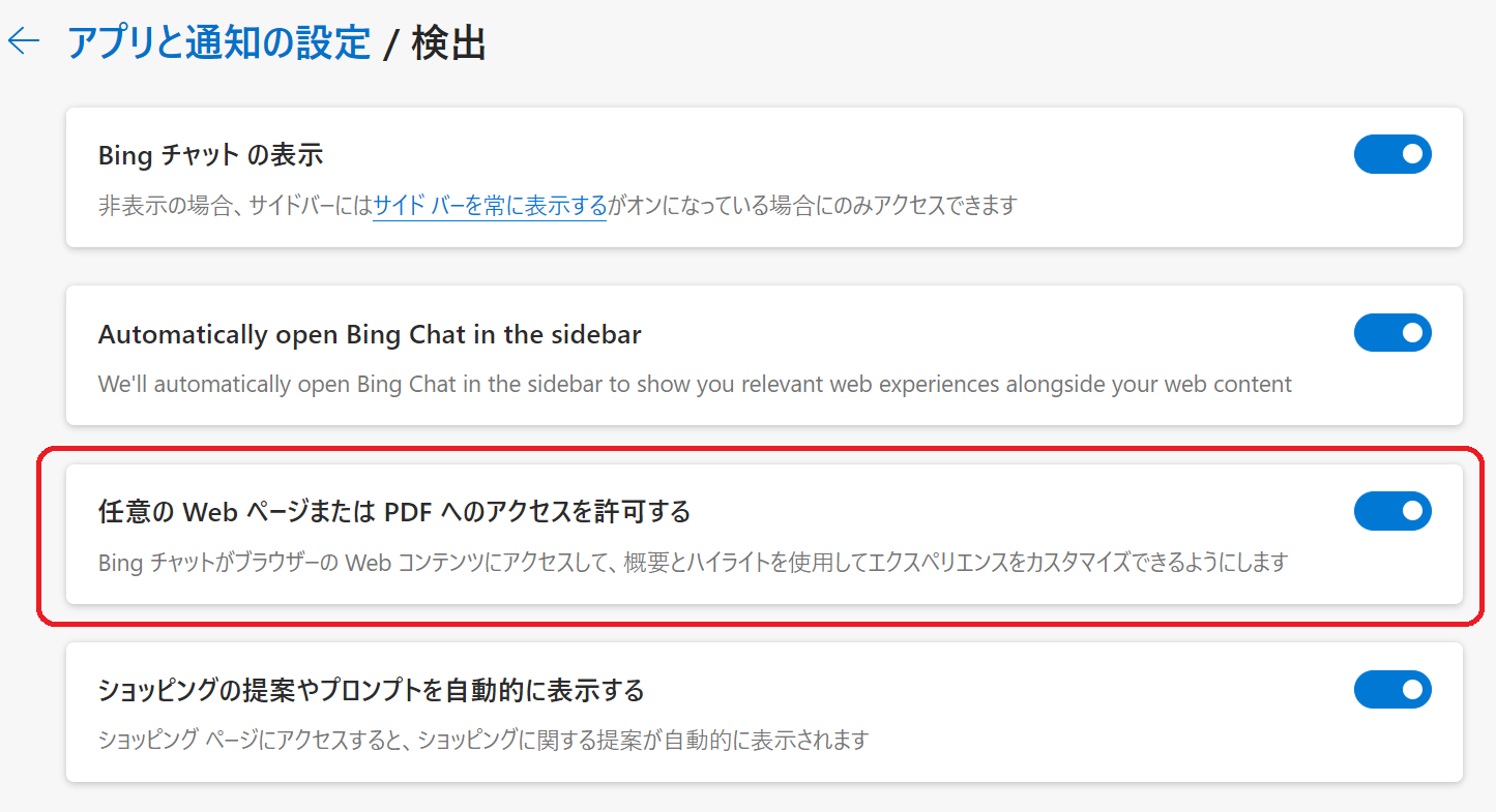 Bing Chat Enterpriseは、ChatGPTのブラウジング機能と同様に、インターネットを検索できます。さらに、現在閲覧しているページをインプットにできる便利な機能を持っています。情報の収集や解析において、これらは大きな強みであり、様々な業務シーンでの活用が期待されます。