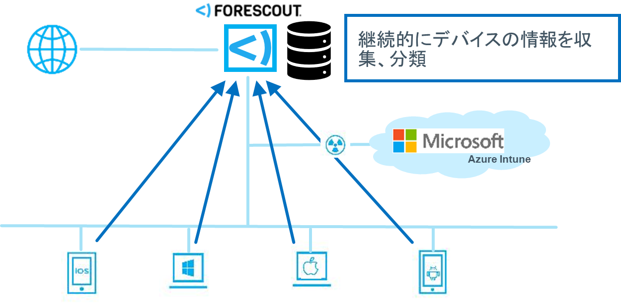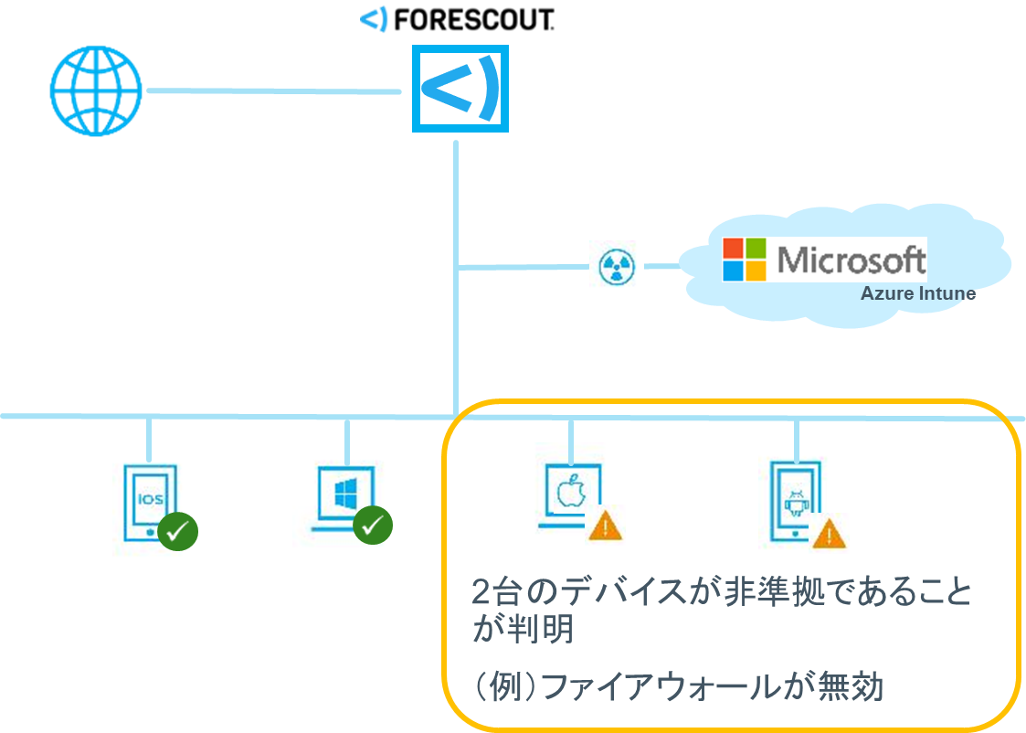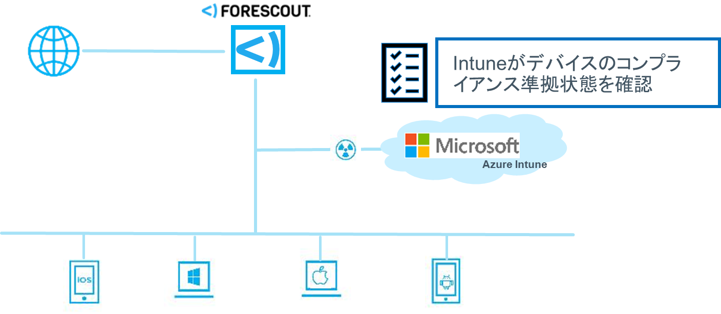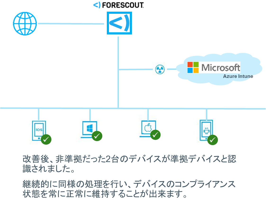 Intuneだけでは、ネットワーク上の非準拠デバイスを識別して制御まで実施することは難しいですが、Forescoutがそれを見事にカバーしている点がよい点と言えます。