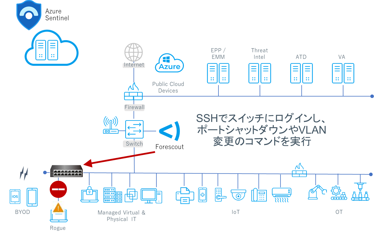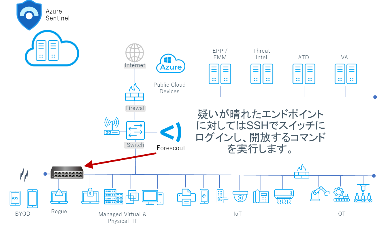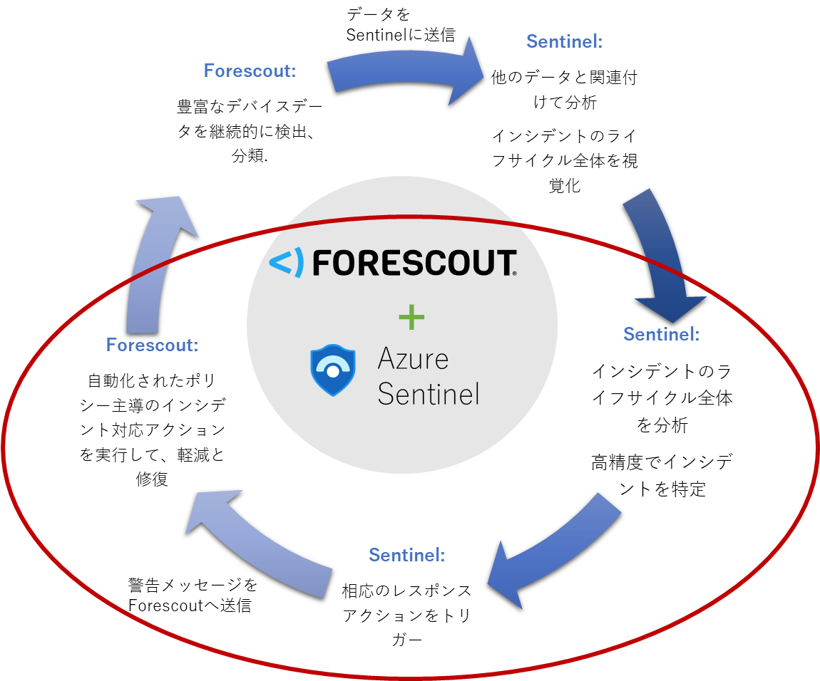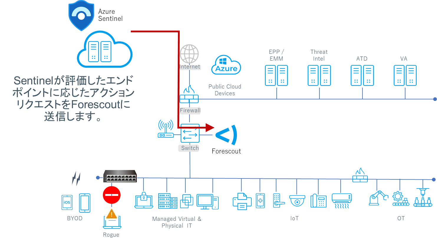 今回はMicrosoft Sentinelが統合したデータを分析し、Forescoutとの連携によってインシデントの兆候の発見からそのインシデントに自動的に対処して行く様子を見て行くことにします。