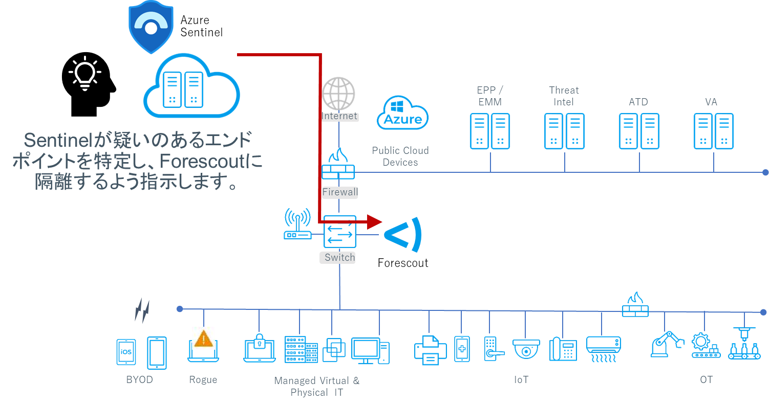 STEP 2.SentinelがForescoutに疑いのあるエンドポイントの隔離を指示
