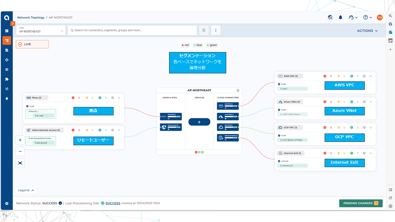 また、セグメンテーションの機能を有しており、色ベースでネットワークを論理分割します。