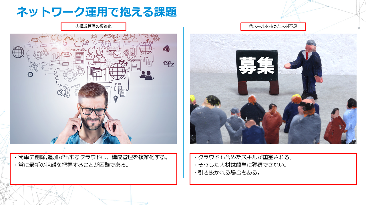 その理由は、現状のネットワーク運用に大きく2つの課題があるからです。