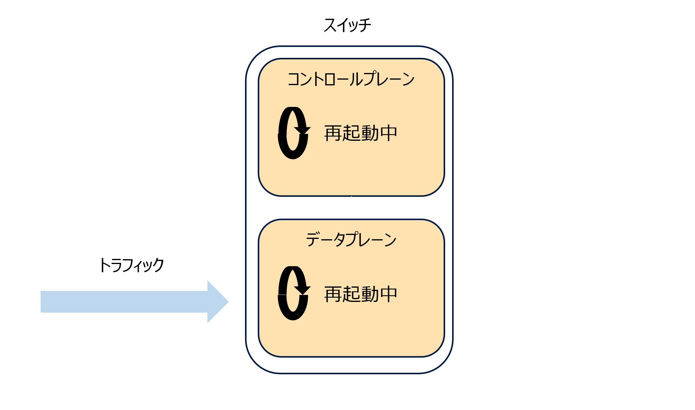 これにより、再起動中でも既存の転送パスを維持できるため、トラフィックの中断を最小化できます。
