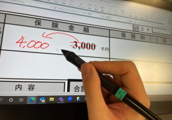 弊社ソリューションはワコム社製液晶ペンタブレットと連携することが可能で、タブレットにモニタを拡張することができます。タブレット上に帳票のイメージデータを表示させ、高い操作性のペンで、文字やアノテーション、付箋を貼ることができます。これにより紙での業務と近い形で審査ができるため、生産性を確保しつつペーパーレス化を実現できます。