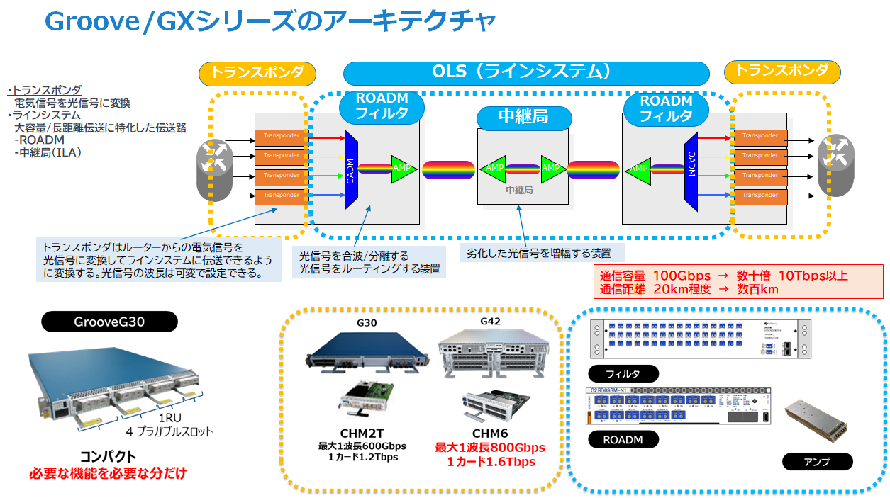 - Infinera社GXシリーズはこれからの光伝送システムに必要な波長容量の広帯域化、ディスアグリゲーション化に対応しています。