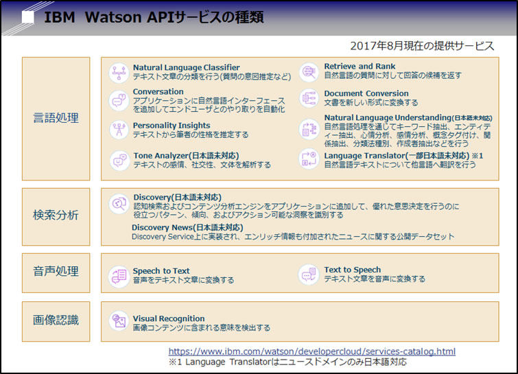 (参考URL: https://www.ibm.com/watson/developercloud/services-catalog.html)