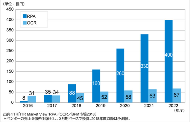 企業向けのシステムで、市場規模は前年比較(2016年 vs 2017年)4.4倍に急拡大している製品があります。それが、最近話題のRPA(Robotics Process Automation、ロボティクス・プロセス・オートメーション)と呼ばれるシステムです。このシステムの仕組みをひと事で説明するならば、“Excelにあるマクロ機能が進化して、システム上のほぼ全ての操作が自動化出来るツール”という感じでしょうか。例えば、毎月月末にお客様ごとに受注内容をまとめてお取引レポートを作成するというような仕事があった場合、担当者は毎月明細が異なる同じフォームのお取引レポートを繰り返し作成することになります。取引明細はERPなど基幹システムから拾えますが、レポート形式なので手間と時間が掛かります。システム開発して自動化するほど重要な業務でもなく、派遣社員やアルバイトでも作成は出来ますが内容確認は担当者や責任者が行わなければなりません。こうしたオフィスで繰り返して行う作業こそ、RPAが威力を発揮する場面です。
