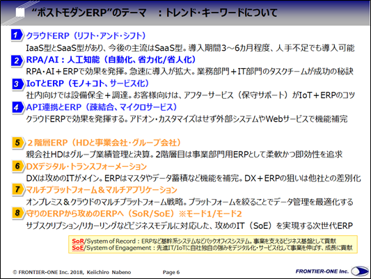 クラウドファーストという言葉も今では当たり前になりました。いまどきクラウドやオンラインストレージがセキュリティ弱いなどと言う情報システムはごく少数のスキルと知識の無いIT部門を持つ企業くらい(意外とゼネコンITベンダが多い)ですが、クラウドERPが急速に普及している現状を見ていると近い将来オンプレミスのERPシステムが少数派になるのは確実です。急速にクラウドERPがここ最近急拡大している理由の1つに、ERPコンサルタントが絶対的に不足しているという理由があります。また、DXやIoT、AIなどシステム化があらゆる領域に必要となるため、ERPやSCMなどエンタープライズ系システムの技術者が足りない状況です。今後も、システム技術者が足りない状況は改善しないと思われます。つまり、限られたシステム技術者で状況を打開する必要があります。これは、基幹システムを刷新するユーザー企業がシステム導入をベンダに依頼したくても必要な技術者が確保できない状況になると老朽化したままのシステムを使い続けなければなりません。実は、SAPでは既にこれに近い状況になりつつあります。老朽化した基幹システムを塩漬けにするのか、莫大な費用を投じても技術者を集めて基幹システムを再構築するのか、あるいは第三の選択肢を考えるのか。クラウドERPは、この第三の選択肢を考える取り組みにもつながります。DXやIoT、AIへの投資は企業の競争力に直結しますから、最優先で取り組むべきテーマです。しかし、ERPもこれに次いで重要なシステムですから、技術者が居ないからと言って簡単に塩漬けするという選択はあり得ないと思います。クラウドERPに対する取り組み方が、企業によっては突破口になり得るのではないかと思います。
