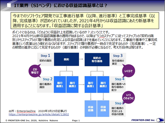 今回はERP再生において来年4月以降に適用される収益認識基準(前編)をご紹介しました。それほど難しい内容ではありませんが、ベンダにとってもユーザー企業にとってもプロジェクトに直接関わることなので、これを機会に整理してご理解ください。次回の収益認識基準(後半)では、具体的にその考え方やポイントについてご紹介いたしますので、引き続きお読み頂けると幸いです。アフターコロナのなか、みなさまのご健康と経済再生を心より願っております。