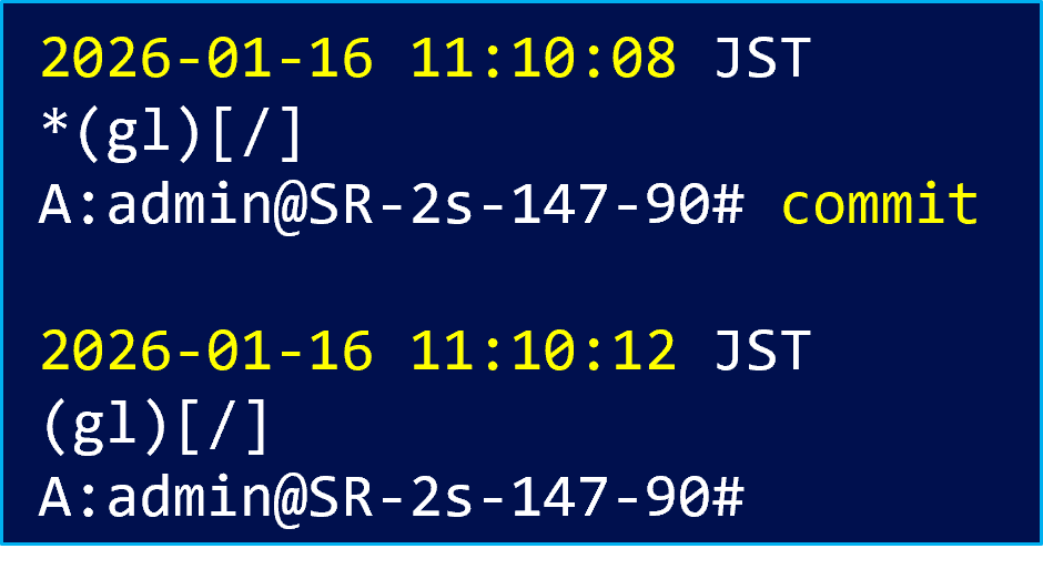 CPM 冗長構成では、スイッチオーバー後に設定差分が発生しないことが重要です。SR OS では commit が実行されるたびに、Active CPM 上の コンフィグファイルを Standby CPM へ自動的に同期します。