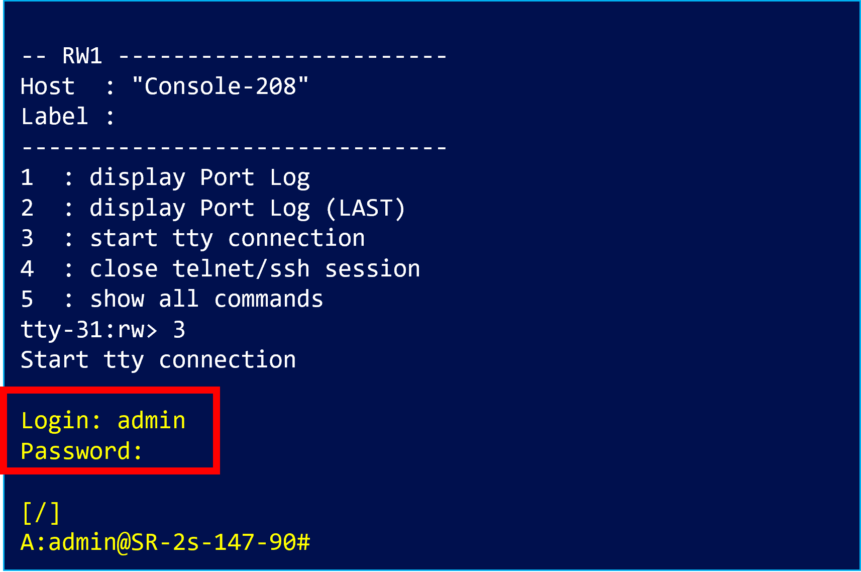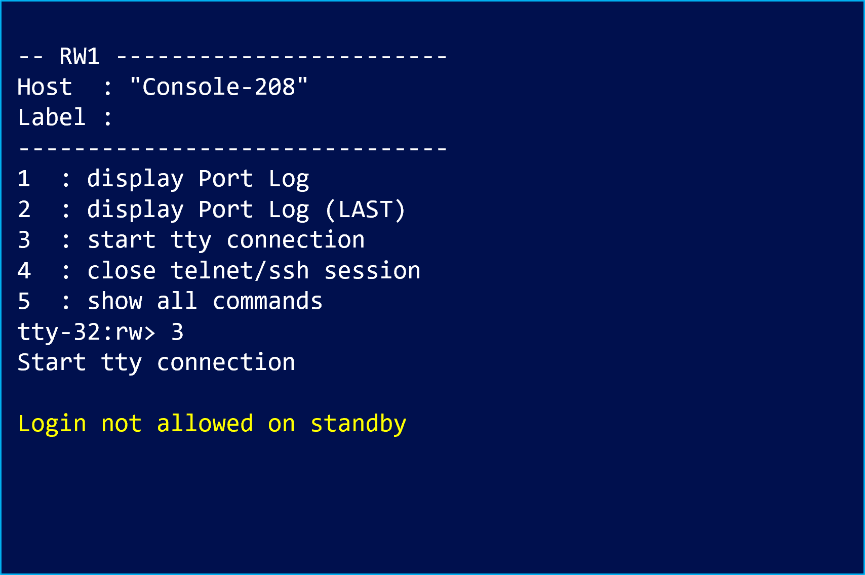 なお、この挙動はコンソール接続時に確認でき、Standby CPM への SSH ログインはできません。