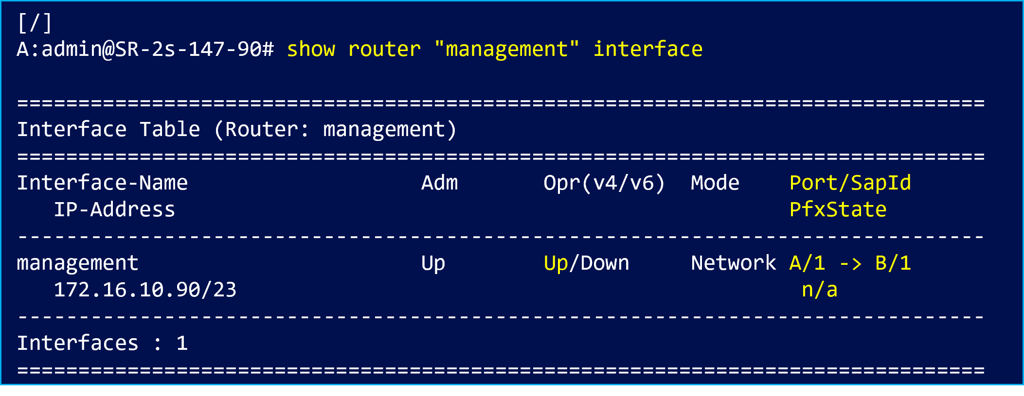 show router “management” interfaceの出力では、以下の表示になります。