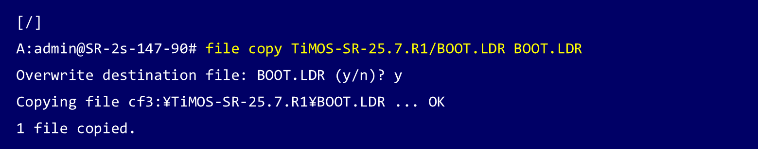 25.7R1のディレクトリ内に含まれるboot.ldrをルートディレクトリに上書きコピーをします。