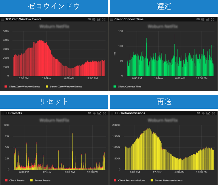 遅延の発生状況をより詳しく把握するためにもゼロウインドウ、リセット、再送などの発生状況を把握しておくと遅延の原因追及にも役立ちます。さらに、それぞれにKPIを設定(例えば、再送率を4%以内にする)して、達成できるような個別の取り組みを行っていくことで回線品質を担保することができます。