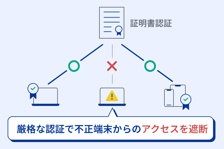 接続する全デバイスを厳格に認証・識別し、動的なアクセス制御を適用、ゼロトラストセキュリティの実現に不可欠な、中核を担う認証基盤です