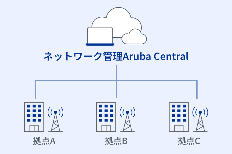 Aruba Centralで全拠点の機器をクラウドから一元管理し、設定や更新をリモートで実施することで、現地作業の手間と運用負荷を大幅に削減します。