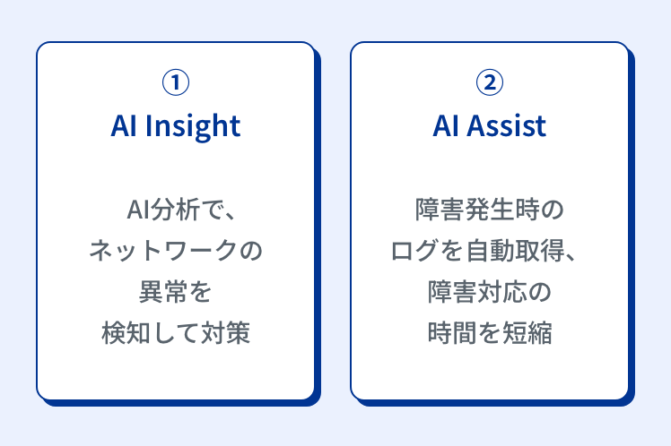 AI Opsがネットワークの異常やパフォーマンス低下の予兆を自動で検知・解析します。自己回復を促すことで安定稼働を維持し、トラブルを未然に防止します。