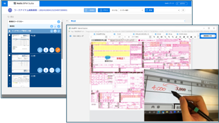 案件とドキュメントファイルを紐づけ。付箋機能や手書きアノテーション機能により、現物業務からデジタル業務フローにスムースに移行可能です。
