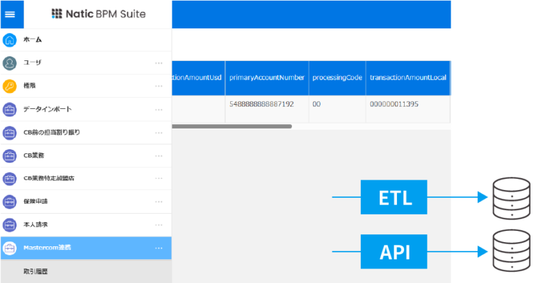 ETL機能標準搭載。またSQLを利用したデータ取得やAPI連携を通じ、基幹システム、データウェアハウス(DWH)、外部サービスと接続し、自動化と効率化を実現します。