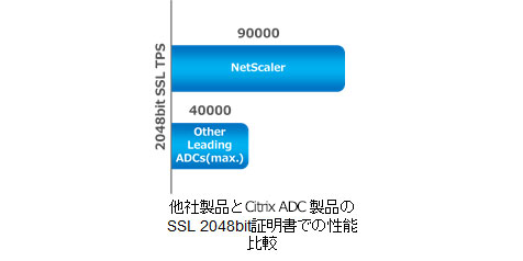 専用のSSLチップを搭載しているCitrix ADC製品ではこの2048bitの鍵長の暗号化通信に対して他社に比べてハイパフォーマンスな通信環境を提供致します。