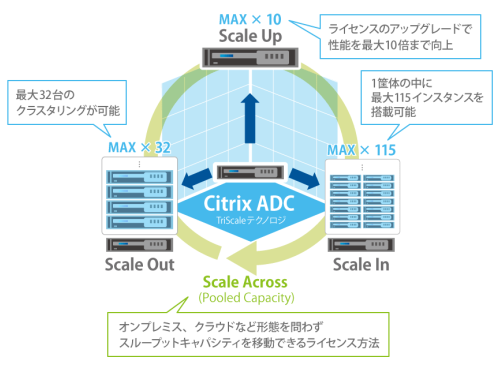 Citrix ADCのTriScaleテクノロジーにより、スモールスタートで導入してからパフォーマンスを増強していくことが可能。(TriScaleテクノロジーについてはこちら)
