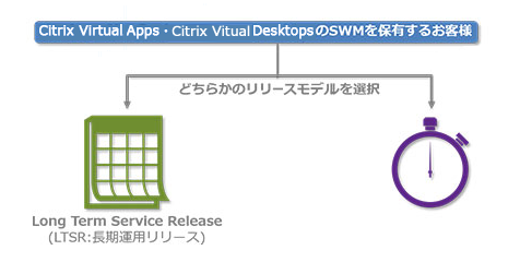 多くの企業においてパソコンはリース契約が満了するまで同一バージョンで運用することが多く、デスクトップ仮想化環境に移行された企業おいても同様に長期運用を求められる傾向があります。しかし、Citrixは短いスパンで革新的な機能を含む新バージョンをリリースしているため、多くのお客様より長期運用に適したライフサイクルへの変更要望が上がっておりました。Citrixはお客様の声に耳を傾け、2016年1月より2つのサイクルモデルでCitrix Virtual AppsおよびCitrix Virtual Desktopsを提供しています。