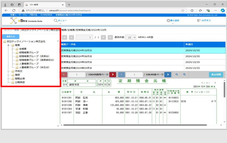 - ツリー検索:日次帳票などをフォルダ階層から検索