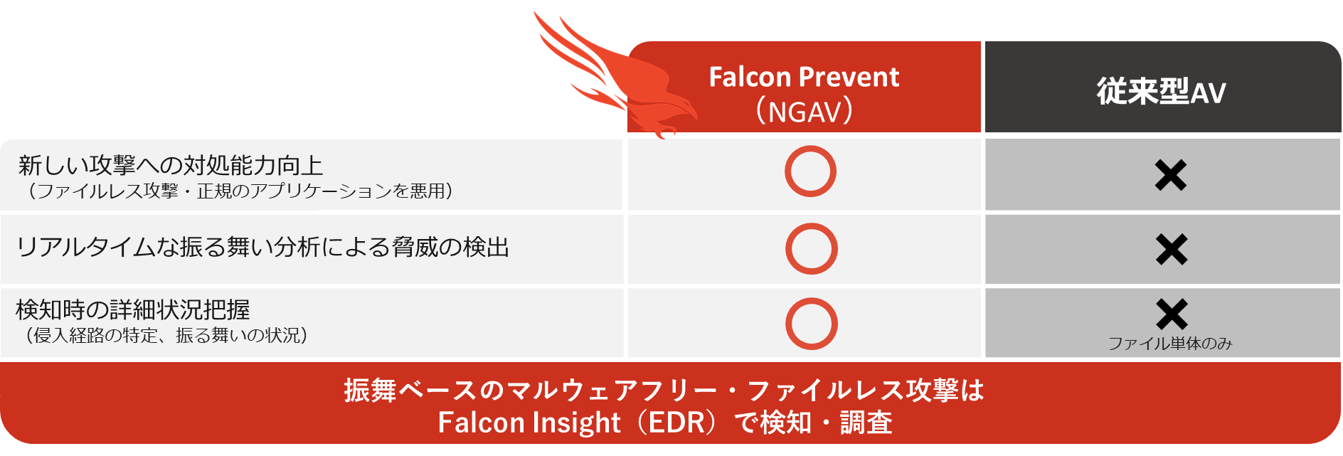 Falcon Preventはすぐに利用を開始でき、 シグネチャや詳細なチューニング、またはコスト のかかるインフラストラクチャは不要です。