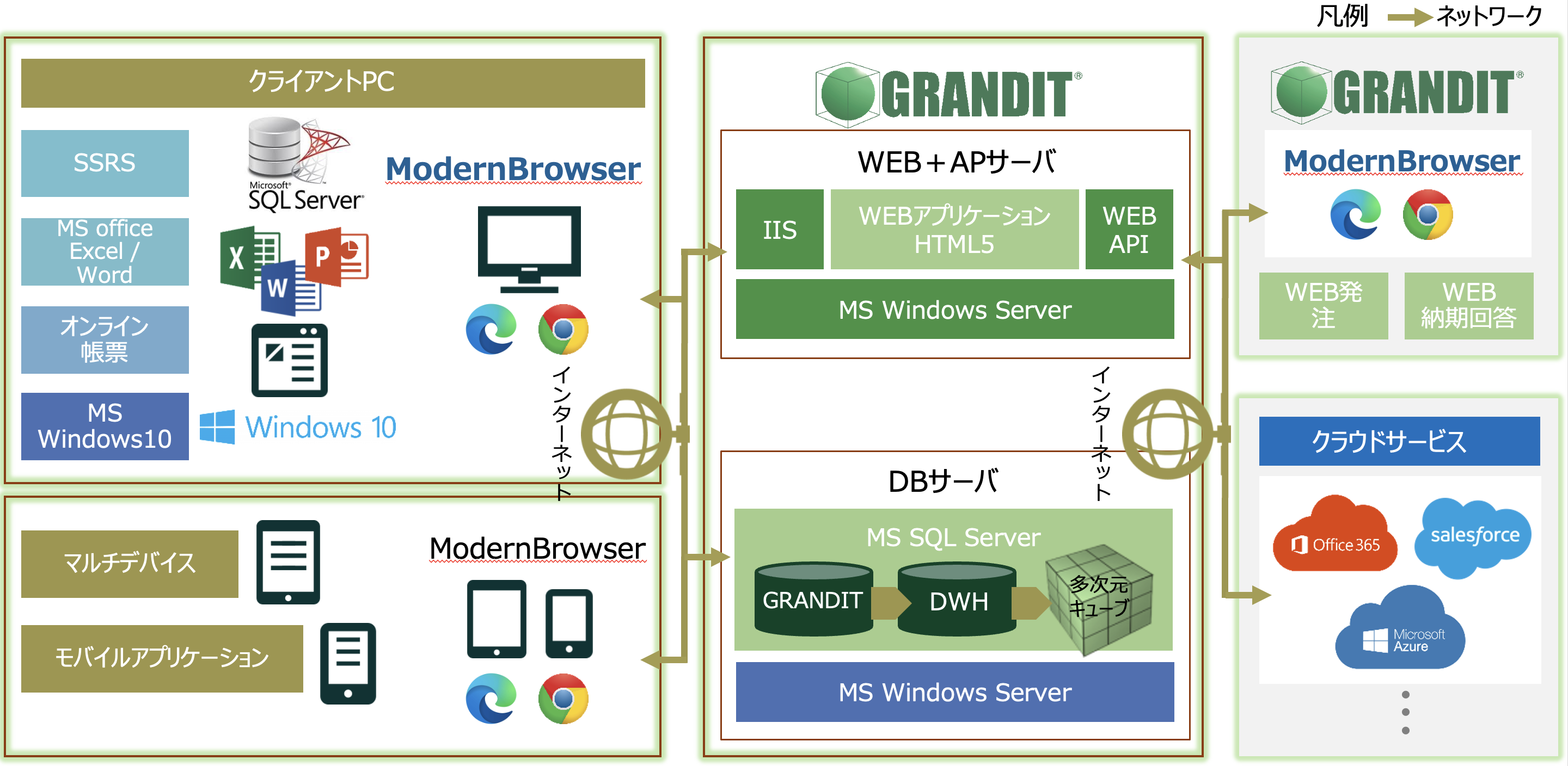GRANDITのU/IはHTML5化によるモダウンブラウザ対応により、IntenetExplorerに加え、Microsoft Edge、Google Chromeに対応しています。モダンブラウザ対応により、各種デバイス、クラウドサービスとの連携を可能にし、企業の多様な働き方を促進いたします。
