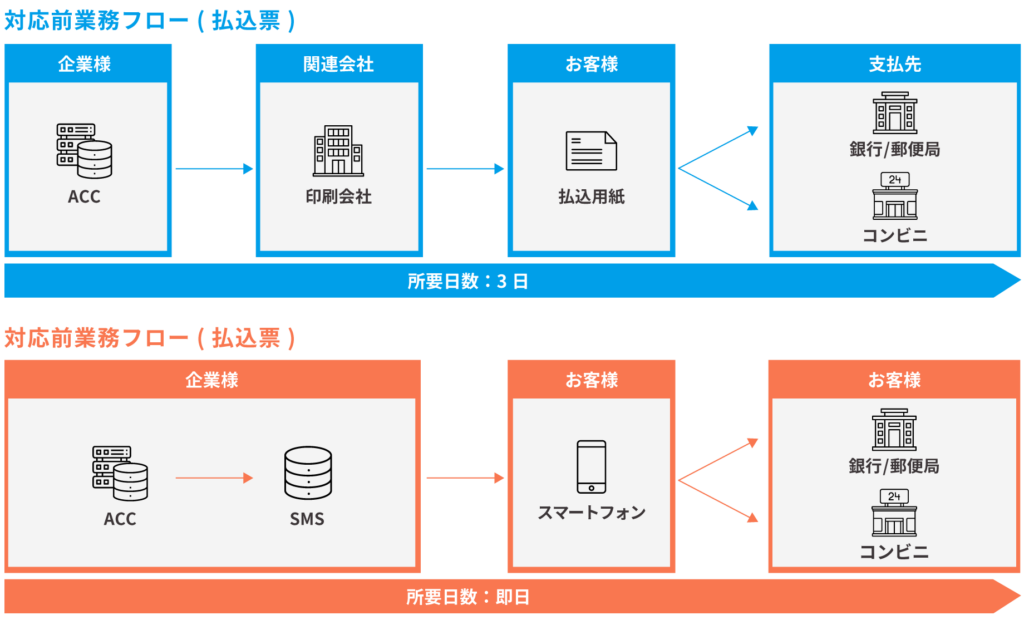 紙の払込用紙送付に代わり、お客さまのスマートフォンへコンビニで支払えるバーコード情報が記載されたSMSを送付します。