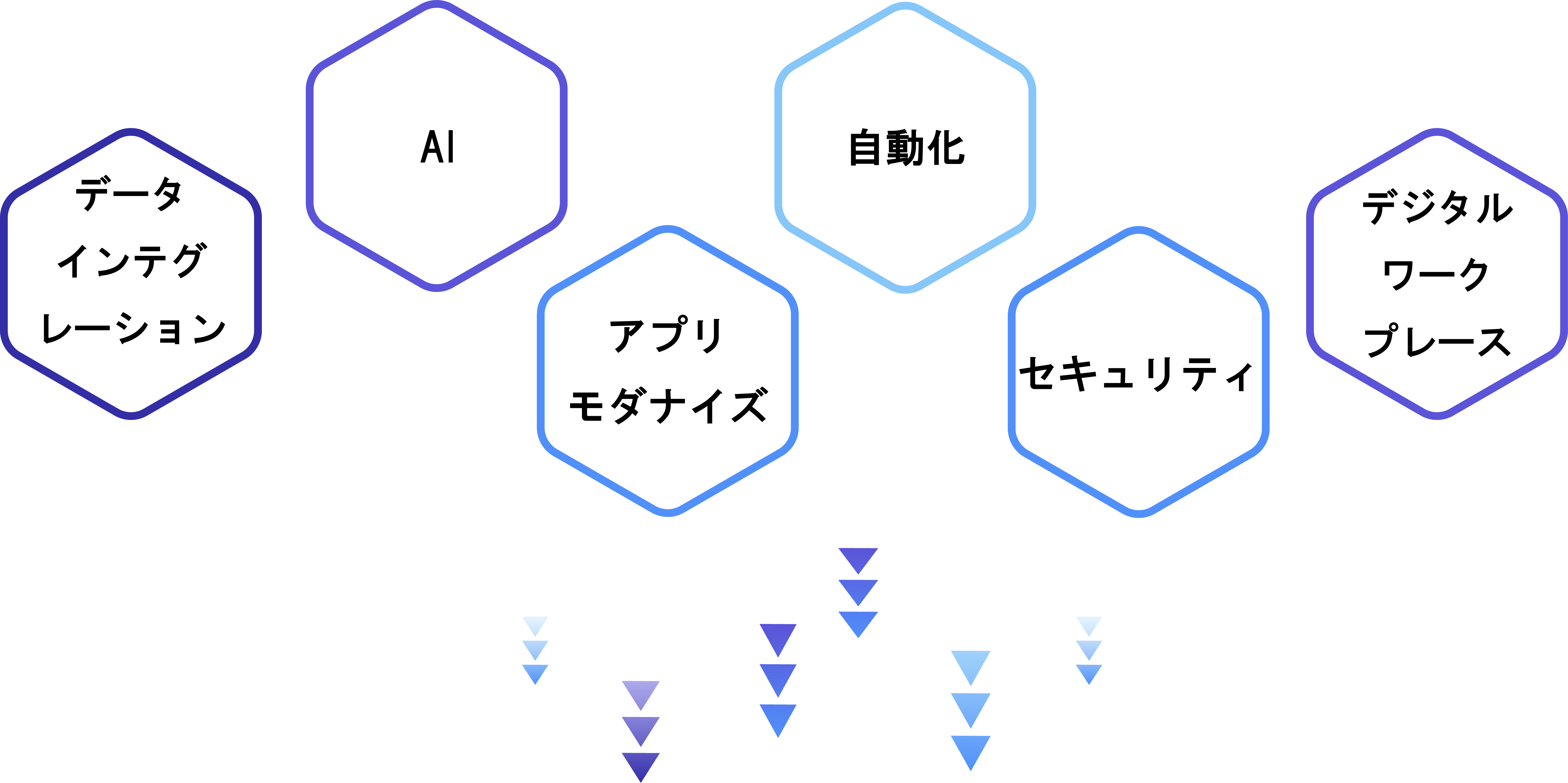 本サービス では、DXを実現するデジタル技術として、6つを挙げました。これらを軸として課題の解決に向けた環境を用意致しますので、ぜひ体験いただき、未来のお客様像を描く手助けとしてください。