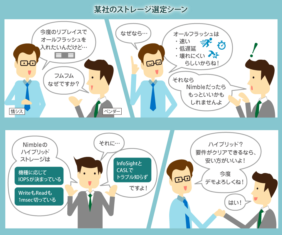 「オールフラッシュ」のストレージが注目を集めがちですが、ストレージ購買を検討している担当者にとっては「価格」の比較以外のポイントがわかりにくくなっています。そこで、新たな選択軸として、Nimble Storageのハイブリッドストレージが注目されています。どのようにしてNimble Storageが選ばれているのか、その流れをケーススタディでご紹介します。