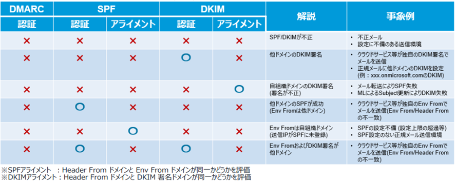 DMARC認証の失敗パターンはいくつか考えられますが、特にクラウドサービスでよく見られるのが、“SPF/DKIM認証は成功しているけれどもDMARC認証は失敗する”パターンです。