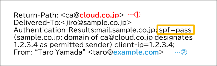 もちろんなりすましメールが正常にブロックされているだけとも考えられますが、正当なメールでも設定によっては起こりえます。例を挙げて見てみましょう。