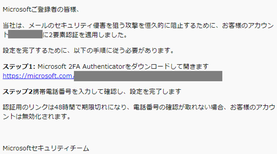 実は、上記メールは実際に流通していたMicrosoftを装ったフィッシングメールです。