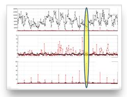 Proofpoint のアノマリティクス解析はビッグデータ技術を元にしており、ネットワーク上のトラフィックを数百もの要素についてリアルタイムに分析します。これらの分析と過去のメールトラフィックパターンの分析から、メール送信元の「通常」の行動パターンをモデル化し、過去と異なる挙動 (アノマリー) を示した場合に、疑わしい攻撃と判断します。