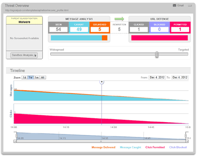 ProofpointTAP の Threat Insight サービスは、Webベースのダッシュボードとカスタマイズ可能な警告システムにより、攻撃状況をリアルタイムに可視化し、素早い対応と復旧を可能にします。