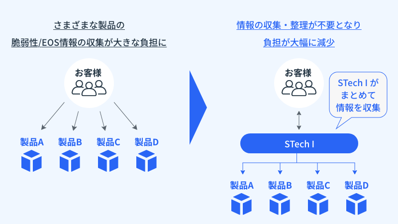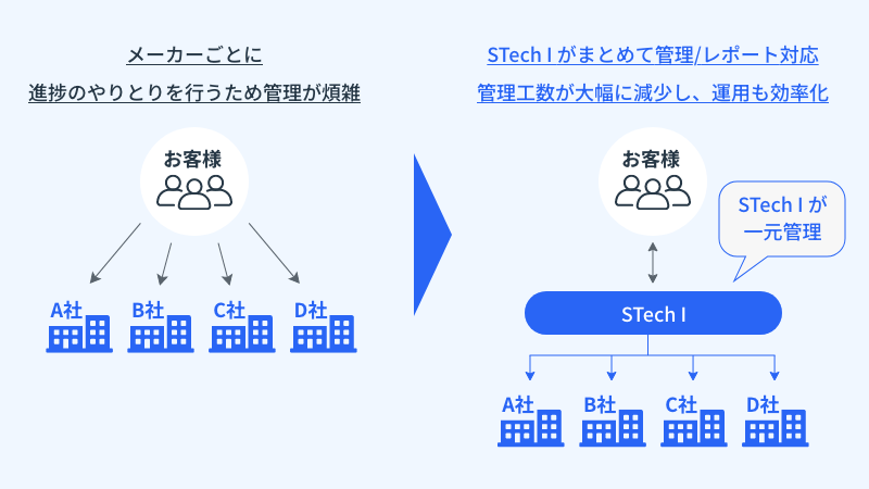 - 窓口の一本化による調査効率化STech Iへの一度の連絡による、複数のメーカーにわたる調査を一括実施